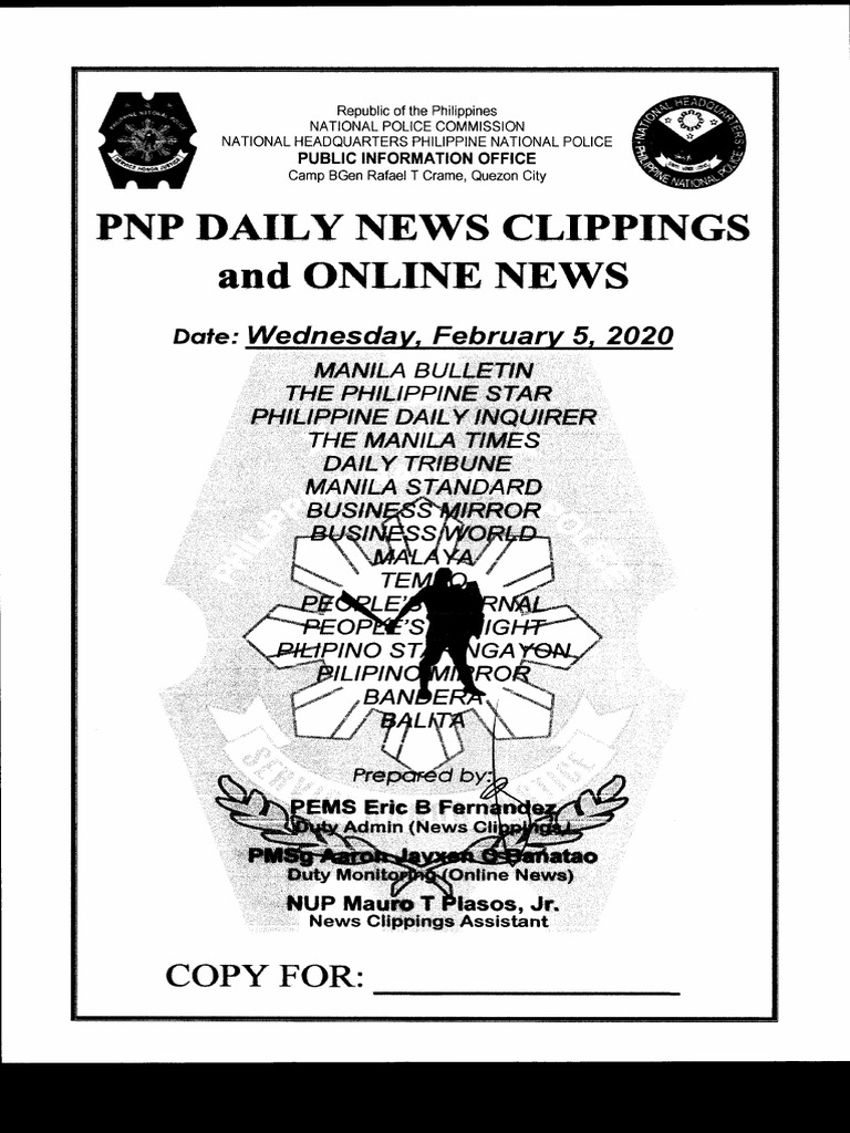 February 5 2020 Pnp Daily News Clippings And Online News Pdf